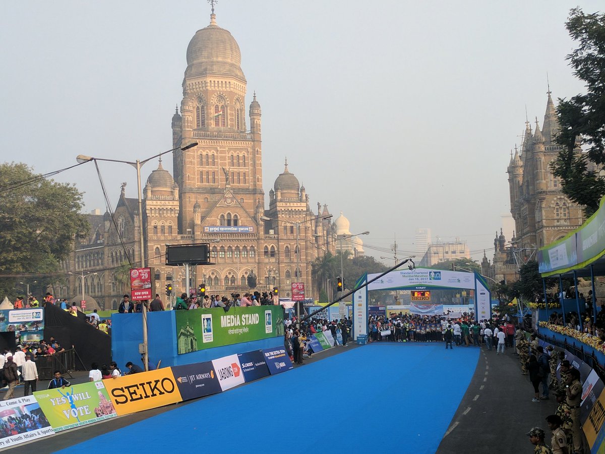 मुंबई - 14 व्या मुंबई मॅरेथॉनला रविवारी (15 जानेवारीला) राज्यपाल विद्यासागर राव यांनी हिरवा झेंडा दाखवत सुरुवात झाली. मॅरेथॉनमध्ये 42,379 स्पर्धक मॅरेथॉनमध्ये सहभागी झाले आहेत. मॅरेथॉनमधील 42 किलोमीटरची पुरुष गटाची मुख्य मॅरेथॉन टांझानियाच्या अल्फोन्स सिंबूने जिंकली. महिला गटात मुख्य मॅरेथॉनमध्ये चाल्तु ताफा दुसऱ्या क्रमांकावर तर इथिओपियाच्या टिजिस्ट गिर्माने तिसरा क्रमांक पटकावला.